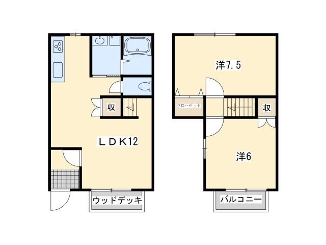 アヴェニール T 鞍手の2LDK賃貸メゾネット!メゾネットシステムキッチン駐車場2台各居室6帖以上2LDK|株式会社ハウス倶楽部