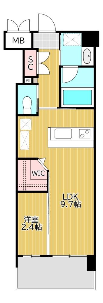 1LDK( LDK9.7畳/洋室2.4畳 ) |