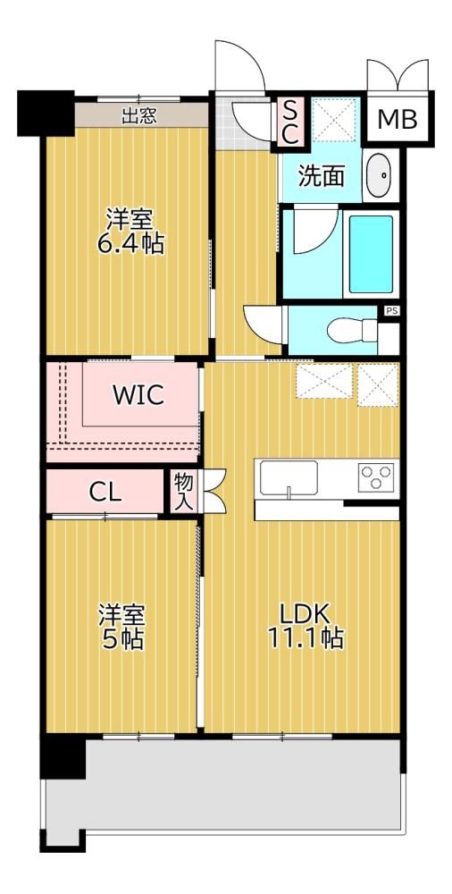 2LDK( LDK11.1畳/洋室5畳/洋室6.4畳 ) |