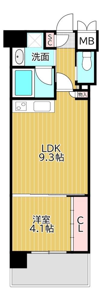 1LDK( LDK9.3畳/洋室4.1畳 ) |